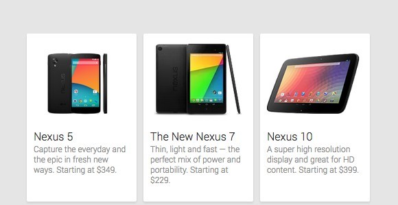 Nexus 5 "засветился" в Google Play Store с ценником в $349Не представленный еще официально Android-смартфон Nexus 5 был замечен в интерент-магазине Google Play Store бок о бок с планшетами Nexus 7 и Nexus 10. Аппарат в версии с 16 ГБ внутренней памяти получил ценник в $349, хотя ранее сообщалось, что данная модель будет доступна по цене $399, в то время как за 32 ГБ его версию придется отдать $449.