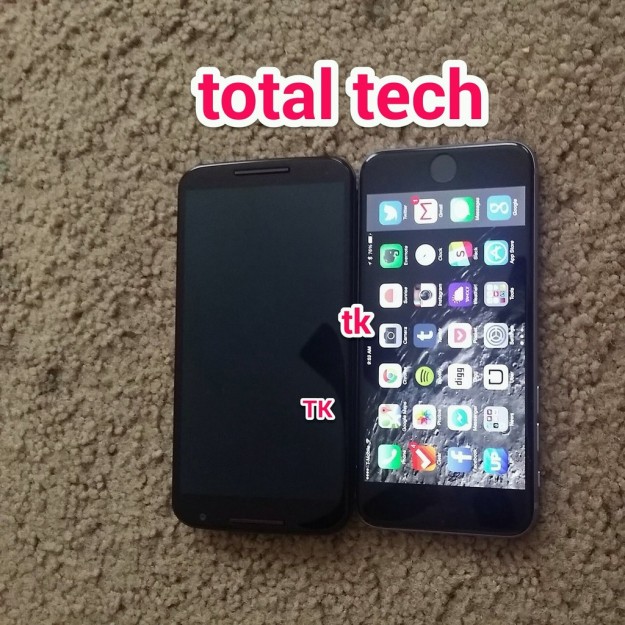 Nexus 6 "позирует" на фото бок о бок с iPhone 6 PlusВ Сети опубликовали "живое" фото не представленного еще официально смартфона Nexus 6, на котором он изображен бок о бок c фаблетом iPhone 6 Plus. Судя по снимку, совместное «детище» компаний Google и Motorola по габаритам не намного больше 5.5-дюймового девайса "яблочного" производителя, вместе с тем диагональ его дисплея все же заметно больше, что подтверждает предыдущие утечки о том, что Nexus 6 получит 5.9-дюймовый экран.