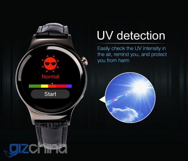 Часы оснащены круглым дисплеем, поверх которого нанесено специальное покрытие предотвращающее появление царапин, и сенсором ультрафиолетового излучения. Корпус гаджета изготовлен из полированной нержавеющей стали, а ремешок кожаный.