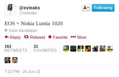 Nokia EOS выйдет на рынок под названием Nokia Lumia 1020Всем известный twitter-аккаунт @evleaks на своей страничке фразой "EOS = Nokia Lumia 1020" сообщил о том, что будущий камерофон финского производителя, известный всем под кодовым названием "EOS", на рынок выйдет как Nokia Lumia 1020. Ранее, напомним, сообщалось, что смартфон будет оснащен 32 ГБ встроенной памяти, 4.5-дюймовым OLED дисплеем с разрешением 768X1280 пикселей, 41 Мп камерой с ксеноновой вспышкой, которая может делать одновременно 35Мп и 5Мп снимки. Работать аппарат будет под управлением операционной системы Windows Phone 8.