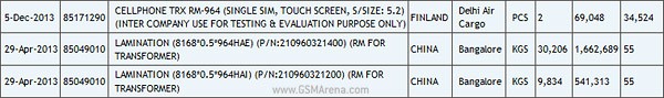 Nokia готовит к анонсу 5.2-дюймовый смартфон за $563Благодаря веб-ресурсу Zauba стало известно, что финская Nokia направила на заключительное тестирование смартфон с номером модели RM-964.