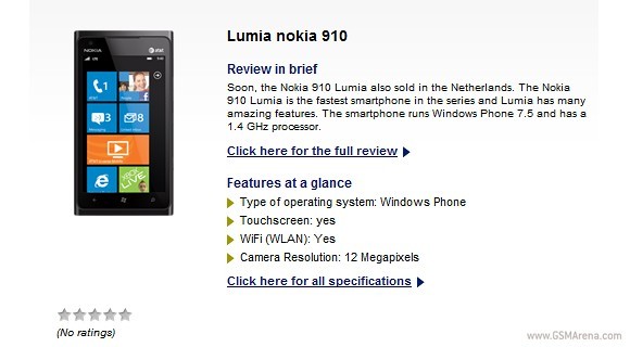 На одном из голландских интернет-магазинов появился новенький Nokia Lumia 910, но дата старта продаж трубки не называется, однако форма для предварительного заказа уже доступна.