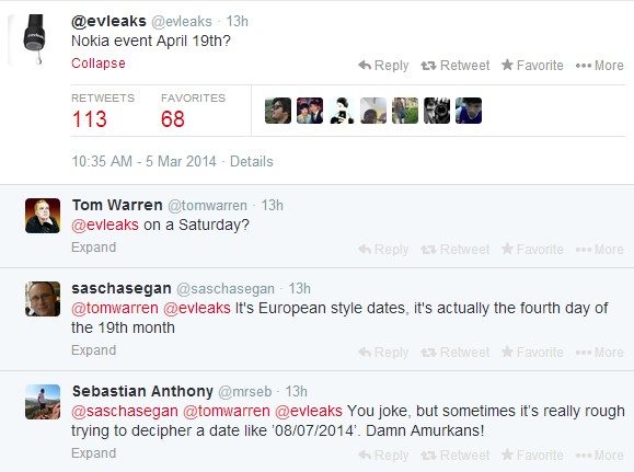 Nokia представит 19 апреля преемника смартфона Lumia 920Twitter-аккаунт @evleaks, известный своими публикациями о неанонсированных устройствах, на странице в сервисе микроблогов сообщил, что финская Nokia якобы запланировала на 19 апреля пресс-конференцию. На мероприятии, как ожидается, Nokia представит преемника Lumia 920 — смартфон, известный на сегодняшний день под кодовым названием "Martini".