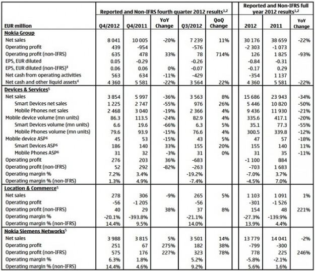 Nokia заработала только в четвертом кварталеПо итогам последнего квартала финский производитель заработал порядка 439 млн. евро. Выручка компании составила чуть более 8 млрд. евро – 8,04 млрд. Однако согласно отчету компании, большая часть прибили, получена за счет функционирования подразделения Nokia Siemens Network. Конечно же, подразделение Devices & Services также оказалось в плюсе, но не столь значительном, как это удалось Nokia Siemens Network.