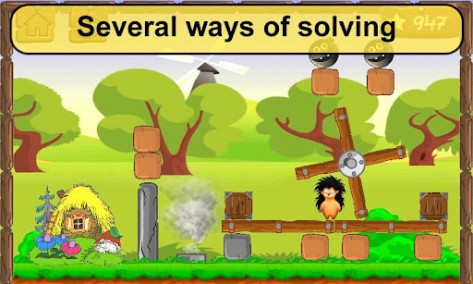 Пример решения головоломки: разрушаем ящик, ежик катится в ствол пушки, стреляем им в кнопку, вверх поднимается каменная стена и ежик скатывается по наклонной доске вниз и катится к своему домику. Геймплей напоминает что-то вроде пинбола на современный лад. Играется задорно.