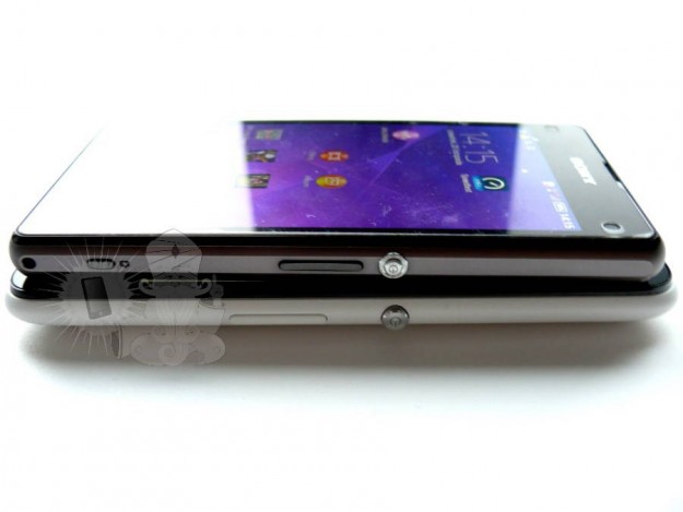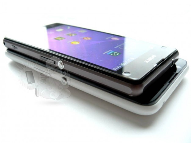 На снимках новинка изображена бок о бок со смартфоном Xperia Z1 Compact. Аппарат выполнен в новом дизайне - прямоугольный брусок с закругленными краями корпуса и узкими боковыми рамками вокруг дисплея. Круглая кнопка питания и качелька регулировки громкости обустроены традиционно по центру правой боковой грани.