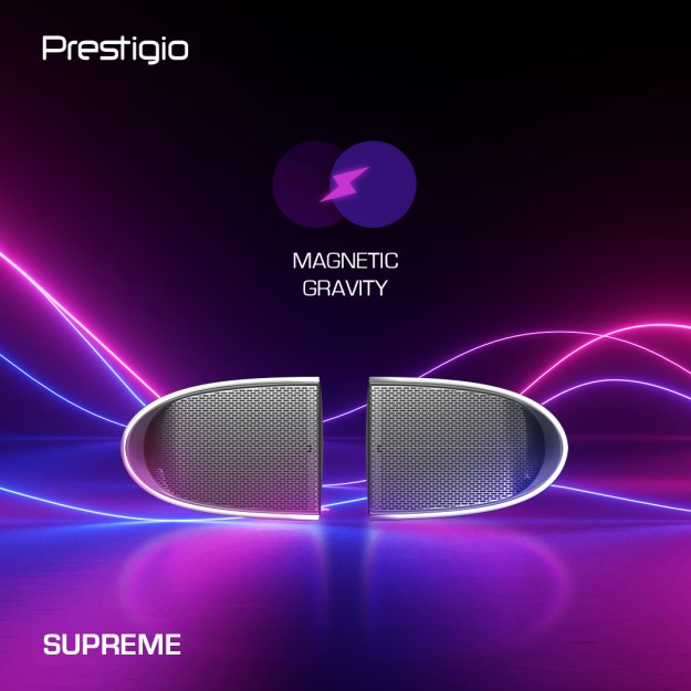 Новинка от Prestigio! Supreme – мощная колонка 2-в-1 на 16 ВтКомпания Prestigio представляет портативную колонку Supreme с уникальной магнитной конструкцией и функцией True Wireless Stereo. Prestigio Supreme – настоящее воплощение технологичного магнетизма: две колонки за секунду объединяются в одну 16-ваттную и также быстро превращаются в две 8-ваттные.