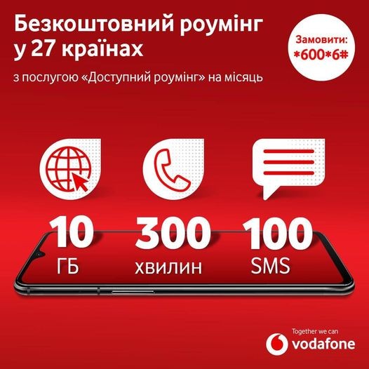 Новий безкоштовний пакет роумінгу від VodafoneВідсьогодні користуйтеся новим безкоштовним пакетом у роумінгу, сплачуючи лише свою українську абонплату. З оновленою послугою «Доступний роумінг» кожного місяця ви отримаєте: