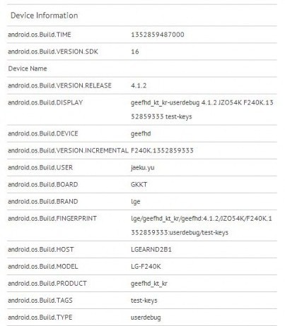 Новые подробности о смартфоне LG F240K, оснащенном дисплеем 1080рИнформация о том, что корейская компания LG готовит смартфон с дисплеем, разрешение которого 1080р на днях нашла свое логическое продолжение в бенчмарке GLBenchmark. Конечно данных не очень много, но теперь мы, по крайне мере знаем, что новинка получит графику Adreno 320, а потому, скорее всего, аппарат будет создан на базе 4-ядерного процессора Qualcomm Snapdragon S4 APQ8064 1,5 ГГц.
