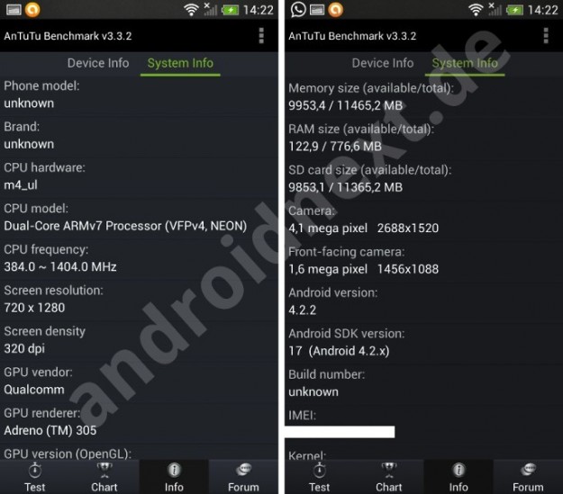 Итак, согласно информации со скриншотов, HTC One Mini получит от производителя 1 ГБ оперативной памяти, 4Мп основную камеру UltraPixel и 1.6Мп фронтальную, 4.3-дюймовый дисплей с разрешением 720x1280 пикселей, 2-ядерный процессор семейства Snapdragon 400 с тактовой частотой 1.4 ГГц и графикой Adreno 305.