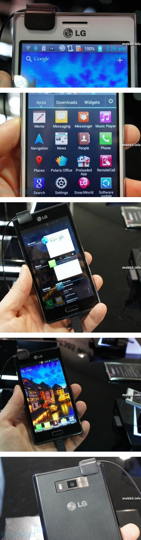 В начале февраля мы познакомились с представителем новой линейки смартфонов LG Optimus L – L3, а сегодня выяснилось, что на MWC-2012 LG привезла и собственно эту модель, и ее «старших братьев», смартфоны L5 и L7. LG Optimus L7 по праву может считаться флагманом серии, он снабжен 4,3 дюймовым дисплеем, двухъядерным процессором (1 ГГц), 1 ГБ RAM, 5 Мп камерой с функцией записи HD-видео, Bluetooth 3.0 и Wi-Fi 802.11b/g/n, выходом HDMI. LG Optimus L5 обладает 4-дюймовым экраном (480 х 320), 800-мегагерцовым процессором, 5 Мп камерой, Wi-Fi и Bluetooth, GPS, NFC, MicroSD-картридером. LG Optimus L3 – это аппарат с 3,2-дюймовым QVGA-дисплеем, 800-мегагерцовым процессором, 3 Мп камерой, Bluetooth, Wi-Fi, GPS, FM-радио, microSD-картридером. В роли ОС для первых двух устройств выступает Android 4.0, для последнего – Android 2.3 (Gingerbread). Все три модели появятся на рынке в первой половине 2012 года, их точная цена пока не известна.