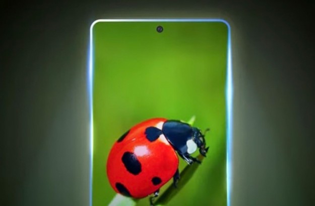 На тизере показан смартфон, у которого по центру в верхней части экрана имеется небольшое отверстие для фронтальной камеры. Можно видеть, что дисплей выполнен в безрамочном стиле.