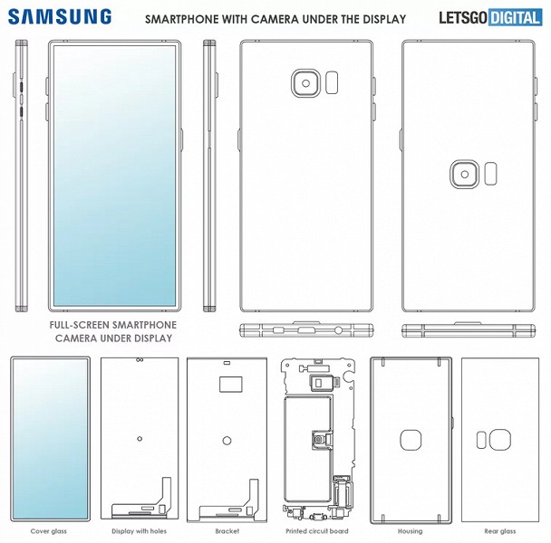 Появились новые изображения следующего флагманского смартфона компании Samsung — источником стал зарегистрированный южнокорейской компанией патент.