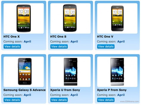 Британское подразделение компании О2 сообщило, что "скоро" в продаже появится сразу россыпь новых смартфонов, в перечне которых имеются HTC One X, S и V, два новых Sony Xperia P и Xperia U, Samsung Galaxy S Advance и два девайса от Nokia (на базе Asha) в виде 201 и 302.