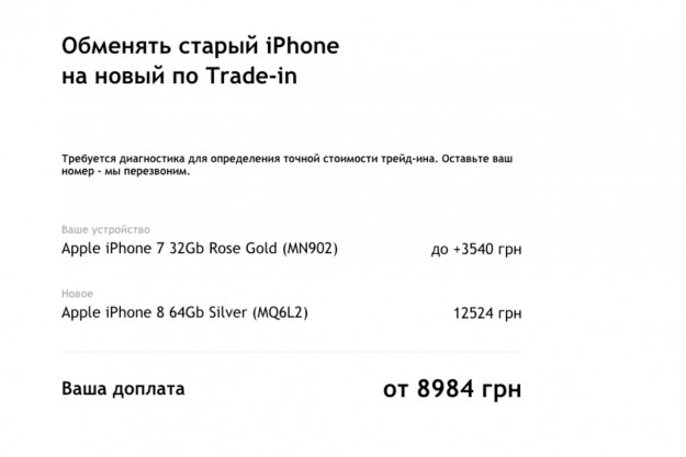 Конечно, стоимость вашего старого iPhone по условиям обмена Trade-In может быть не такой выгодной, как при продаже на ОЛХ, но учитывая ваше сэкономленное время и нервы — это всегда оправданная цена, которая объективно оценивается после диагностики устройства специалистами. Есть ли гарантия после обмена iPhone по трейд-инОбмен по трейд-ин — это такой же факт покупки, как и тогда когда вы покупаете новый iPhone. Поэтому у вас будет гарантия на приобретенный новый iPhone вне зависимости от того, покупали ли вы его по Trade In или обычным способом. В случае возникновений каких-либо проблем с новым iPhone у вас будут все нужные документы для обращения и создания заявки на обмен или гарантийный ремонт. Как обменять старый iPhone на новый по Trade InУсловия кажутся довольно выгодными, поэтому вы наверняка думаете что все это дело будет занимать очень много времени и письменной волокиты с документами. Но на самом деле, процедура обмена старого iPhone на новый по условиям трейд-ин очень простая: