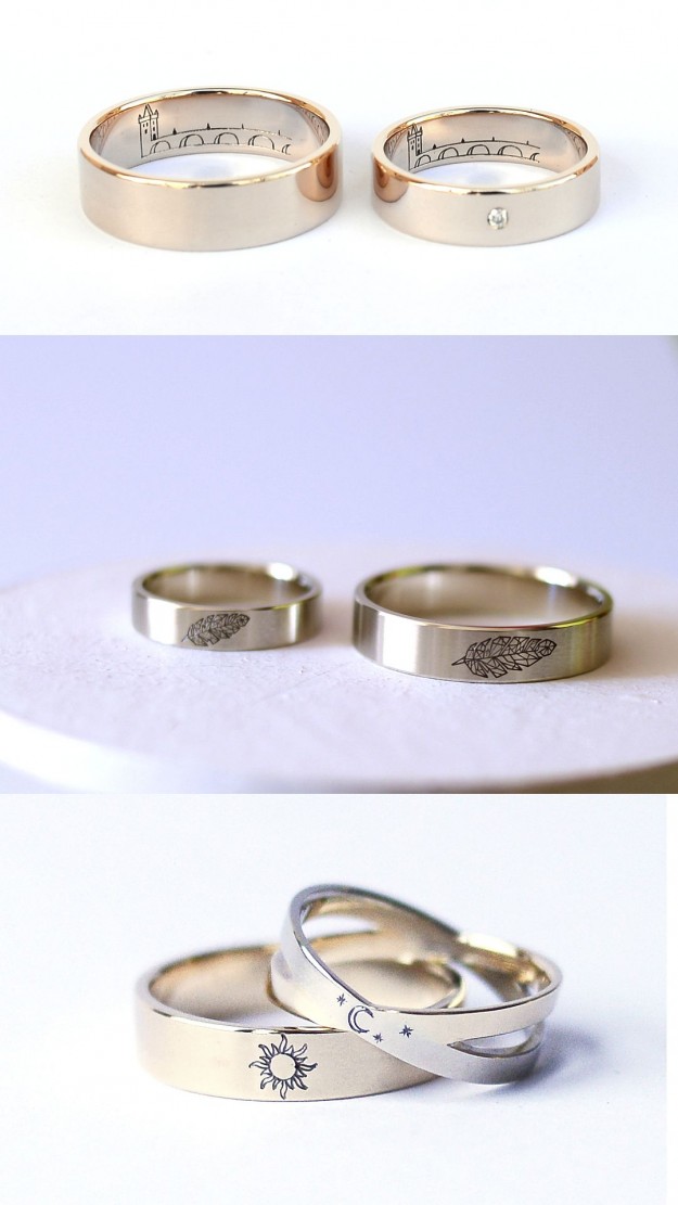 Американка имеет профиль прямоугольной формы, сечение плоское. Колечко пришло к нам из Марики – отсюда и название. У европейки сечение полукруглое, внешний профиль выпуклый, а внутренний плоский. Эти изделия носили преимущественно в Европе. Сказать, что один вариант лучше другого, нельзя – это дело вкуса. Оба колечка могут иметь классический либо оригинальный дизайн. Есть полностью гладкие изделия и варианты с инкрустацией камнями. ТОП-5 популярных женских моделейЕсли вы хотите купить обручальное кольцо, которое будет оригинально и изысканно выглядеть, присмотритесь к таким моделям: