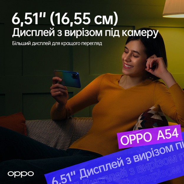 Объявлен старт продаж нового бюджетного смартфона OPPO A54 в УкраинеOPPO, ведущий мировой бренд интеллектуальных устройств, объявляет старт продаж OPPO A54 в Украине. Новинка создана для пользователей, которые хотят, чтобы смартфон полностью соответствовал их ожиданиям, сопровождал их в активной жизни и одновременно мог похвастаться красивым дизайном и незаурядными характеристиками. В течение всего дня OPPO А54 будет рядом благодаря мощному аккумулятору и быстрой зарядке. А чтобы вы могли делать больше и наслаждаться ежедневной порцией развлечений, этот смартфон предлагает мощность восьмиядерного процессора, большой объем памяти (4/64 ГБ) и яркий 6,51-дюймовый дисплей с вырезом под фронтальную камеру.