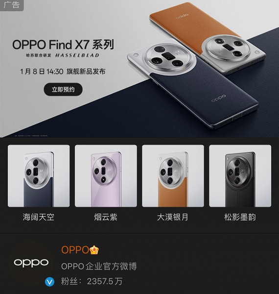 Объявлена дата премьеры смартфона OPPO Find X7 UltraOPPO наконец-то объявила дату официальной премьеры своих новых флагманов. Линейка OPPO Find X7 дебютирует в Китае 8 января 2024 года, в 14:30 по пекинскому времени.