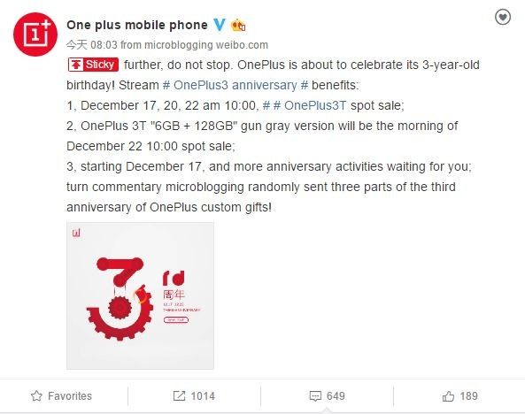 Объявлена дата релиза топовой версии флагмана OnePlus 3TКомпания OnePlus сообщила официальную дату начала продаж топовой версии своего флагмана OnePlus 3T. Итак, модель с 6 ГБ оперативной и 128 ГБ встроенной памяти на борту станет доступна для покупки уже 22 декабря этого года. Джерело: SmartPhone.ua Обговорення новиниКоментариев пока никто не оставил. Станьте первым! Попередні новини