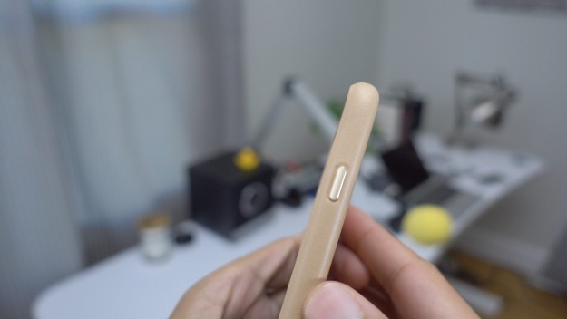 Чехол получил алюминиевые кнопки регулировки громкости и режима сна, которые плотнее прилегают, обеспечивая таким образом более приятные тактильные ощущения. Это делает их использование более удобным. В предыдущей версии Leather Case нажимать на кнопки, сделанные из кожи, было тяжеловато, особенно в начале использования. Стоит отметить, что алюминиевые кнопки полностью соответствуют цвету чехла, поэтому внешне все смотрится очень гармонично. Трудно сказать, будут ли кнопки нажиматься так же легко и хорошо держаться после некоторого времени использования, но их конструкция выглядит очень надежной.