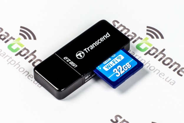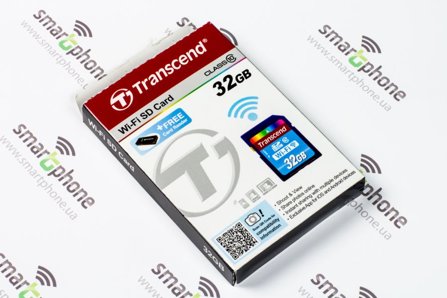 Обзор карты памяти Transcend Wi-Fi SD (32ГБ)Хотите всего в пару кликов передавать на смартфон или планшет только что созданные при помощи вашей «зеркалки» фотографии!? А выкладывать их в Сеть, не вынимая из фотоаппарата карту памяти и не подключаясь к компьютеру!? Все это можно сделать, задействовав Transcend Wi-Fi SD (32 ГБ). Упаковка и комплектация Поставляется этот аксессуар в компактной картонной коробке, на стенках которой много различных технических обозначений, касающихся возможностей гаджета. К примеру, если вы осматриваете лицевую стенку,вряд ли сможете не увидеть информацию о некоем бонусе от производителя. Речь идет о небольшом USB-картридере, совместимом с картами microSD и SD. Помимо этого, здесь имеется информация об объеме накопителя и классе скоростей. А вот небольшой QR-код, вынесенный на эту же панель, «подскажет» о том, с какими фотоаппаратами совместим аксессуар и некоторые другие его особенности.