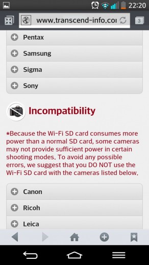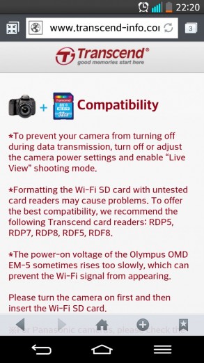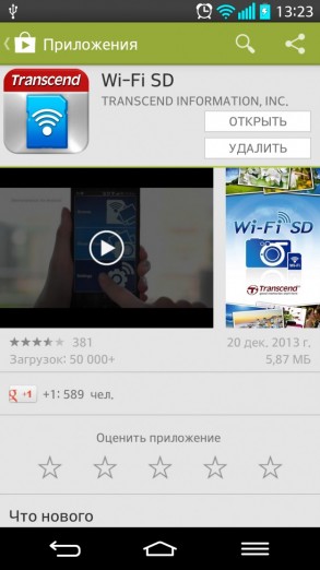 Впечатления от работы В работе Transcend Wi-Fi SD (32ГБ) мне понравился. Настройки простые, работа стабильная, а скорости вполне удовлетворительные. Приятно также, что производитель позаботился об обновлениях приложения. Кстати, одно такое на мой LG G2 «прилетело» во время изучения особенностей Transcend Wi-Fi SD (32ГБ).