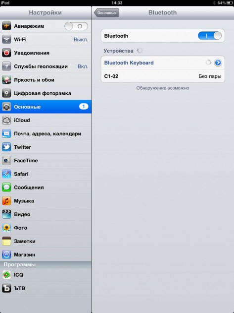 Стоит отметить, что синхронизация ни к первому, ни ко второму устройству не вызвала совершенно никаких проблем – по сути секундное дело. Настраиваем модуль на смартфоне или планшете в режим поиска, затем жмем и удерживаем несколько секунд кнопку CONNECT. После чего необходимо ввести PIN, который появится на экране дисплея планшета или телефона (в зависимости от того, к чему подключается устройство), после чего можно работать!