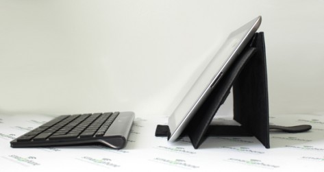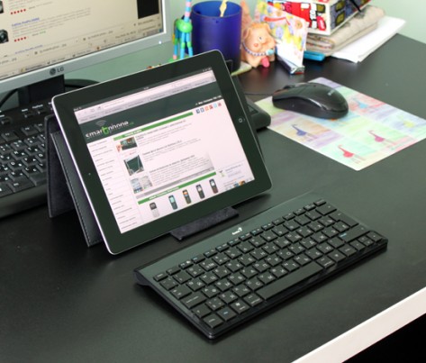 Во время транспортировки клавиатуры чехол служит как своего рода обертка для девайса. А вот если пользователь работает, скажем, с тем же iPad, при помощи чехла можно вполне удобно установить планшет под углом в районе от 80 до 90 градусов. Отмечу, что установка сама по себе надежная – за все время пользования Genius LuxePad 9100 такая, с позволения говоря, подставка не подвела ни разу.