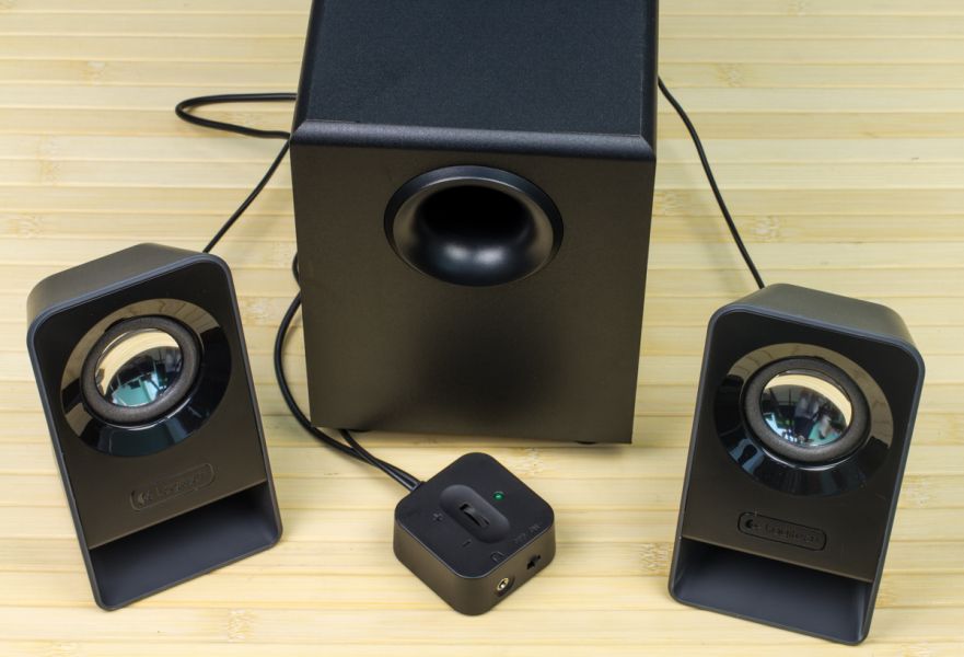 Обзор Logitech Multimedia Speakers Z213: качественный звук за доступные деньгиКомпактная акустическая система класса 2 в 1. Об этом устройстве производитель говорит, как о доступном решении для пользователей, ищущих хороший звук, но не готовых особо переплачивать. Давайте же посмотрим, насколько позиционирование соответствует действительности. Упаковка и комплект поставки Logitech Multimedia Speakers Z213 упакована в компактную картонную коробку, обладающую узнаваемым по обзорам других устройств производителя дизайном. Осматривая стенки упаковки, помимо иллюстрации самой акустики, а также ее отдельных «компонентов», пользователь сможет познакомиться с паспортом устройства, узнает о комплекте поставки, а кроме того, сможет изучить некоторую информацию о компании-производителе. Внутри коробки содержатся две сателитные колонки, сабвуфер с пультом регулировки громкости звука и необходимая документация. Сборка и внешность Корпус колонок реализован из пластика нескольких цветовых решений: серый каркас и тыльная панель, плюс черная передняя часть. В свою очередь сабвуфер практически полностью, за исключением нижней его панели, «обтянут» материалом, напоминающем кожу. В последнем случае решение совершенно не ново, Logitech частенько «обращается» к нему. Внешность Z213 чем-то особенным не назовешь. Однако стоит учесть, что перед нами продукт, ценник на которое немногим больше 300 гривен на старте продаж. Согласитесь, как для продуктов Logitech, выглядит привлекательно. Словом, с учетом сказанного, плюс аккуратной и качественной сборки, вряд ли тот факт, что для этого устройства не придумали дизайн, как говорится, «с нуля», должен особенно «цеплять» пользователя. Тем более, что дизайн дешевым не выглядит. Краткие технические спецификации