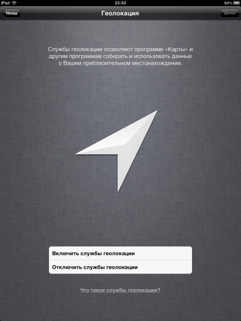После чего система предложила мне настроить Службу геолокации. Приятно, вся процедура не заняла и нескольких минут.