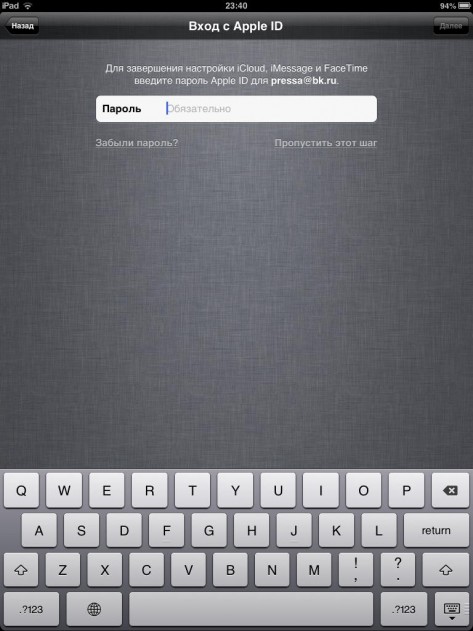 Далее необходимо было провести авторизацию Apple ID, обновить iCloud и на этом все.