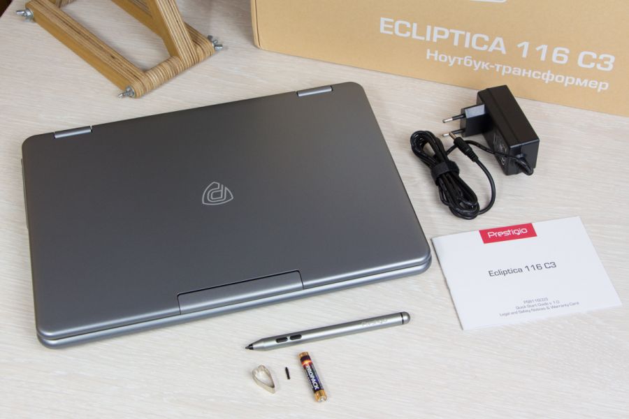 Комплектация Prestigio Ecliptica 116 C3 – небольшое устройство темно серого цвета, которое упаковали в скромную, но экологичную упаковку. Комплектом поставки предусмотрена небольшая инструкция-гарантийный талон, зарядное устройство на 24 Вт и стилус. Блок питания не разъединяется с кабелем – это единое целое. К стилусу комплектацией предусмотрели запасное перо и батарейку. Гарантия на ноутбук 12 месяцев. Завтра обсудим корпус, а если уже возникли вопросы по Prestigio Ecliptica 116 C3 – задавайте, будем отвечать на них в процессе тестирования. Джерело: SmartPhone.ua Обговорення новиниИванНеГай: Ну вот бы еще цену снизили, хотябы до 399 долларов. Вот тогда был бы на расхват. Хотя в такой конструкции я то и не знаю других. Есть со съемными элементами у HP, типа планшет и отдельно клава, но там производительность не та. Попередні новини