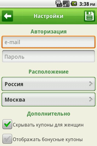 Когда вы ищете что-то определённое, например скидку на поход в ресторан, с помощью просмотра определённой категории этот процесс можно существенно ускорить. Ещё одна опция, которая отфильтрует нежелательные предложения — "скрывать купоны для женщин". Если поставить галочку напротив данного пункта в меню, то салоны красоты и прочее скроется с ваших глаз, эта функция полезна как мужчинам (не захламляет экран неинтересными предложениями), так и для женщин (нет необходимости бороться с желанием купить всё и сразу).