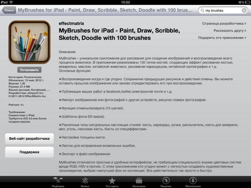 Обзор приложения My Brushes для iPadОтличный инструментарий для пользователя, который любит рисовать. Посредством этого приложения можно не только создать изображение, но и воспроизвести в последствии сам процесс живописи. Огромное количество кистей, шаблонов, широкое редактирование и многое другое в рассматриваемом сегодня приложении.