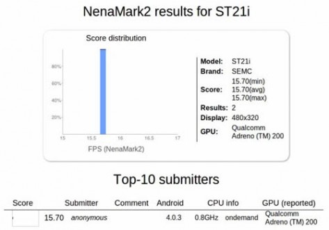 Официально получены подтверждения некоторых характеристик Sony ST21i TapiocaТест NenaMark, результаты которого, как известно, публикуются в Сети, документально подтвердил некоторые спецификации смартфона Sony ST21i Tapioca.