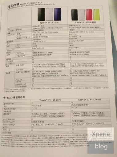 Официальные документы NTT DoCoMo рассекретили спецификации Xperia Z1 miniВеб-ресурс Xperia Blog опубликовал фото официальных документов одного из крупнейших операторов сотовой связи Японии NTT DoCoMo. В них упоминается две версии флагманского смартфона Xperia Z1 — одна с номером модели SO-01F, а вторая с SO-02F.