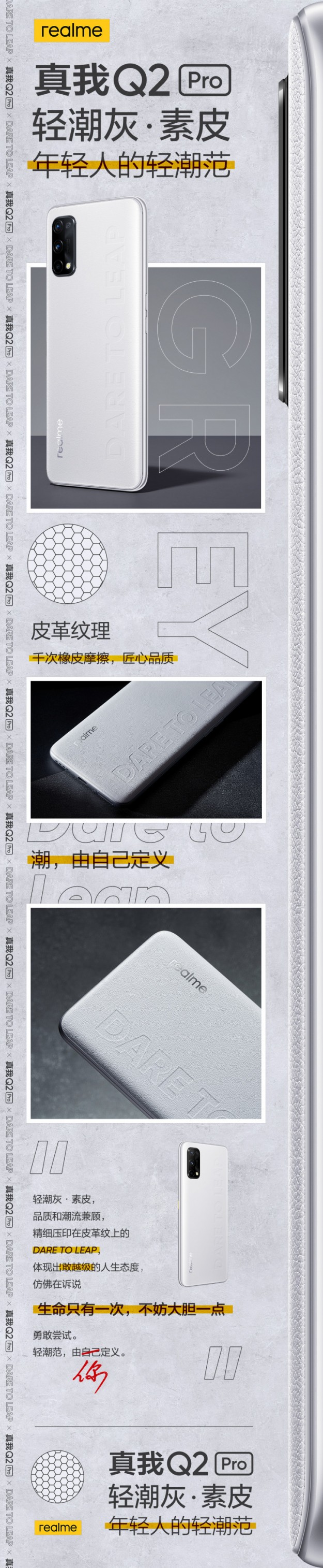 Официальные промо-фото Realme Q2 Pro раскрыли его фишкуНа следующей неделе, помимо премьеры новинок Apple и OnePlus, нас ждет презентация серии Realme Q2. Сегодня китайская компания решила заинтриговать своих поклонников, показав им дизайн модели Q2 Pro. Главное, на что здесь нужно обратить внимание - кожаный (искусственная кожа) задник. На представленных примо-фото мы видим вариант в светло-серых цветах, а на кожаной поверхности можно разглядеть текстурированный слоган бренда Dare To Leap. Здесь же можно убедиться в том, что Realme Q2 Pro получит четверную основную камеру в прямоугольной блоке. Никакие технические подробности пока официально не раскрывались. Презентация состоится 13 октября.