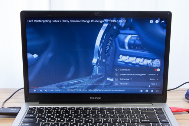 Огляд місяца з Prestigio Smartbook 141 C6: АвтономністьУ редакції ноутбук Prestigio Smartbook 141 C6 вже більше місяця, а значить можна об'єктивно оцінити його автономність і те, як поводиться батарея при різних навантаженнях. Почну з веб-серфінгу, коли відкрито 4-7 вікон у Google Chrome. 50% заряду на яскравості 50% пішло за 4 години. Об'єктивно в такому режимі ноутбука може вистачити на 8 годин. А це – робочий день. Робота виключно з офісним пакетом для написання текстів та підготовки презентацій розтягнулася на 7 годин при яскравості 60%. При цьому на фоні тихо грала музика із динаміків ноута. З іграшками типу CS 1.6 та Age of Empires 2 на 100% яскравості Smartbook 141 C6 протримався до 4.5 годин. Ну і детально по перегляду відео в Youtube у роздільній здатності HD: