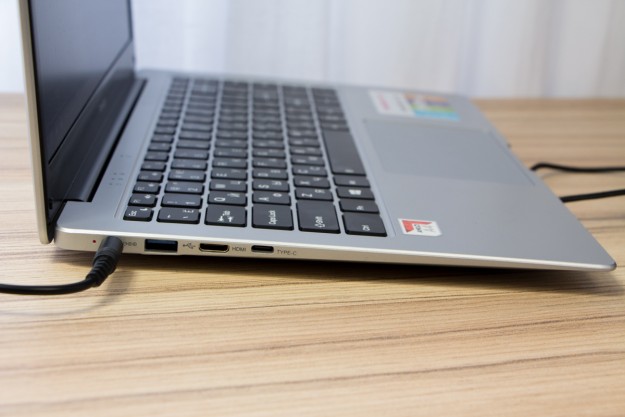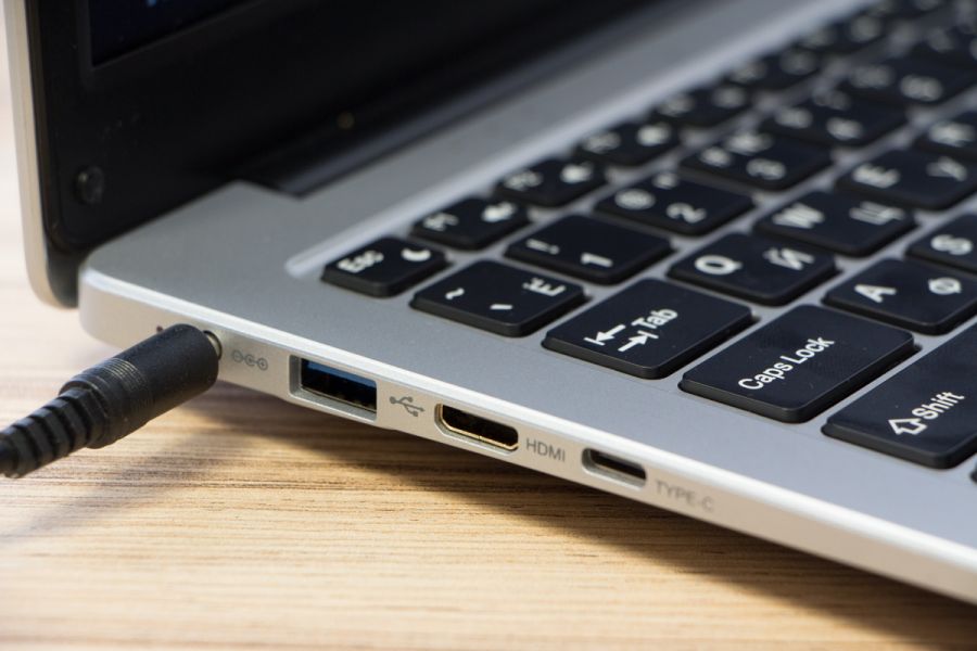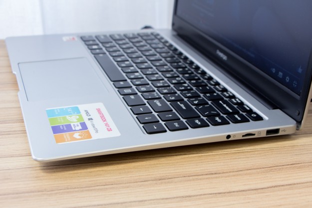 Індикатор живлення і порт для підзарядки ноутбука розмістили також на лівому торці. HDMI порт не Micro формату, але все одно не повноцінний - microHDMI. Це означає, що потрібно мати перехідник. Через нього вставляєте кабель і отримуєте додатковий монітор або виведення зображення через проектор.