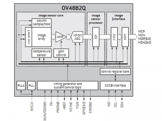 Датчик OmniVision OV48B выпускается с пикселями размером 0,8 мкм, что позволяет выпускать его в оптическом формате 1/2" (диагональю 8 мм с соотношением сторон 1/2). В условиях низкой освещённости разрешение может снижаться до 12 Мп, что за счёт подключений соседних пикселей даёт качественное изображение в ситуации мало подходящей для получения качественных снимков. В целом чувствительность датчика может повышаться в четыре раза.