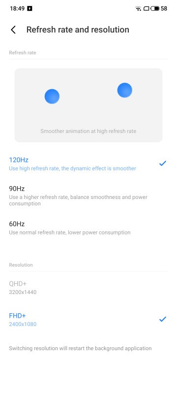 Он обновляется! Meizu 18 Pro теперь с QHD+ на 120 ГцУ нас на тесте находится Meizu 18 Pro - главный смартфон китайского бренда, доступный исключительно для китайского рынка. Одним из главных достоинств устройства является большой дисплей с разрешением QHD+ и частотой обновления 120 Гц, но только сейчас компания раскачала его по полной программе. Meizu 18 Pro получил обновление Flyme OS 9, где стало активно одновременное использование двух упомянутых выше параметров одновременно. Также модель предлагает редкий промежуточный вариант на 90 Гц, что обеспечивает высокую плавность при лучшей энергоэффективности.