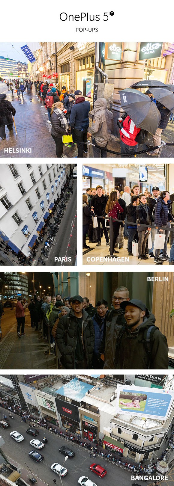 OnePlus 5T стал самым успешным смартфоном OnePlus на стартеOnePlus на днях начала продажи полноэкранного флагмана OnePlus 5T, который стал улучшенной версией представленного в начале года OnePlus 5. Четвёртое поколение флагмана молодого китайского бренда показало, что компания лишь набирает обороты. По словам OnePlus, новинка стала самым продаваемым устройством на старте (первые шесть часов). К сожалению, точных цифр в компании не назвали, зато поделились коллажем из очередей около магазинов в разных странах мира. Напомним, OnePlus 5T поступил в продажу 21 ноября в США, Европе и Индии, а 1 декабря дебютирует в Китае. Стоимость новинки составила 499/559 долларов или евро (в зависимости от региона).