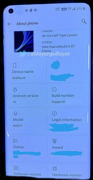 OnePlus 8 с врезанной камерой позирует вживуюПока непонятно, когда именно состоится премьера смартфонов OnePlus 8 и OnePlus 8 Pro, но в Сети уже засветился OnePlus 8 вживую. Причем на экране подтверждены кое-какие его характеристики.