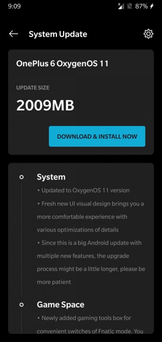 За месяц до официального релиза Android 12 компания OnePlus начала долгожданное развёртывание финальной сборки OxygenOS 11 на базе Android 11 для флагманов 2018 года: OnePlus 6 и OnePlus 6T. Самым заметным нововведением стал новый интерфейс оболочки OxygenOS 11, освежающий дизайн системы и привносящий многочисленные оптимизации. Более удобную работу призван обеспечить новый интерфейс приложения "Камера", а тёмный режим обзавёлся функцией автоматической активации и удобным ярлыком. Также были внедрены все актуальные фишки Always on Display и игрового режима Fnatic.