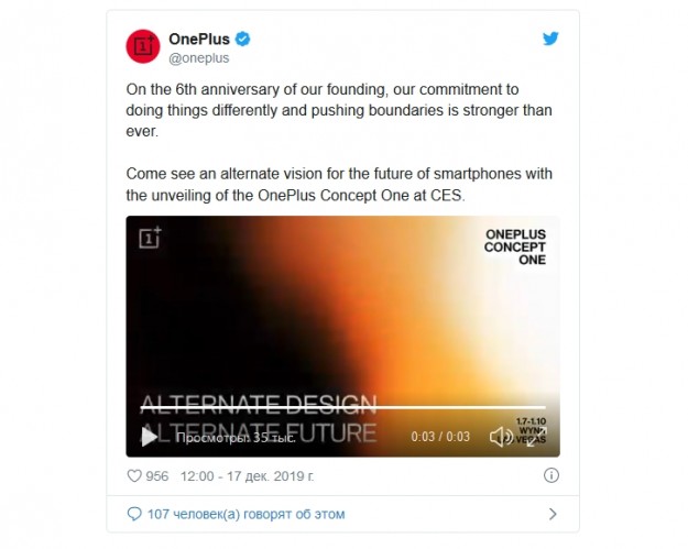 OnePlus сообщила, что начнет год раньше обычного анонсом концептофонаOnePlus официально подтвердила свое участие на выставке CES 2020, которая пройдет в начале января в Лас-Вегасе. Новинок серии OnePlus 8 мы там не увидим, зато китайская компания обещает показать видение будущего смартфонов под условным называнием OnePlus Concept One. Никаких намеков, о чем идет речь, нет, но речь явно идет о дизайне, так что существуют предположения, что в США приедет концептофон со складным экраном. Другим возможным вариантом может быть прототип устройства с фронтальной камерой непосредственно под экраном, который ранее показала материнская OPPO. Какой из них окажется верным, а может OnePlus вовсе удивит, узнаем с 7 по 10 января.