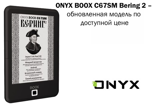 ONYX BOOX C67SM Bering 2 – обновленная модель по доступной ценеКомпания МакЦентр, эксклюзивный дистрибьютор продукции ONYX International представляет на российском рынке новую модель ONYX BOOX C67SM Bering 2. Букридер, являющийся обновленной версией модели ONYX BOOX C63SM Bering. Модель ONYX BOOX C67SM Bering 2 оснащена 6-дюймовым дисплеем E Ink Pearl HD и разрешением 758 на 1024 пикселя. По бокам экрана располагаются две одинарные кнопки листания, а под экраном имеется клавиша, возвращающая на шаг назад.
