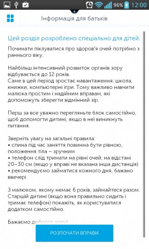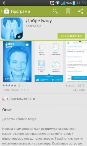 Оператор «Киевстар» презентовал приложение «Добре бачу»Вчера в Одессе состоялась презентация приложения «Добре бачу», разработанного оператором сотовой сети «Киевстар» и Институтом глазных болезней и тканевой терапии имени Филатова. Данное приложение разработано в рамках социальной программы компании «Киевстар» «Мобильное здоровье». Данная разработка обладает функционалом, которого достаточно для того, чтобы проверить зрение на наличие симптомов наиболее распространенных заболеваний для того, чтобы, не теряя времени обратиться к врачу. Кроме того, в этом приложении присутствует ряд упражнений, ориентированных на тренировку глазных мышц, что в свою очередь позволяет дольше сохранить хорошее зрение. Приложение «Добре бачу» распространяется на бесплатной основе. Состоит оно из пяти разделов: «Самодиагностика», «Упражнения для детей», «Упражнения для взрослых», а также «Вопросы-Ответы» и «О проекте». Также данное приложение содержит набор тестов, специальные игры-упражнения, необходимые для снятия напряжения, отдыха и тренировок мышц глаз. Все эти упражнения реализованы в формате красочной игры, которая сопровождается голосом диктора для лучшего освоения и понимания. Согласно оценке специалистов, заниматься с ним будет интересно как детям, так и их родителям. Данное приложение уже доступно для загрузки в Google Play. К слову, здесь две версии. Та, что с приставкой HD ориентирована на использование в планшетах, а та, что без нее - в смартфонах под управлением Android. Кроме того, представители оператора говорят о скором появлении версии и под устройства на iOS7. Джерело: SmartPhone.ua Обговорення новиниГость: Попередні новини