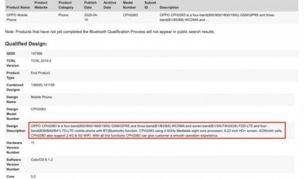 Недорогой смартфон OPPO A12 стал на шаг ближе к выходу: аппарат получил сертификацию в Bluetooth SIG. Кроме того, на сайте этой организации замечены два неизвестных аппарата OPPO — модели с кодовыми обозначениями CPH2067 и CPH2069.