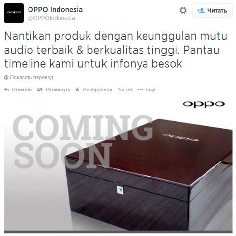Oppo «намекнула» на устройство с суперзвучаниемИндонезийское подразделение китайской компании Oppo опубликовало на своей странице в сервисе микроблогов Twitter тизерное изображение своей будущей новинки — устройства с "лучшим качеством звука".