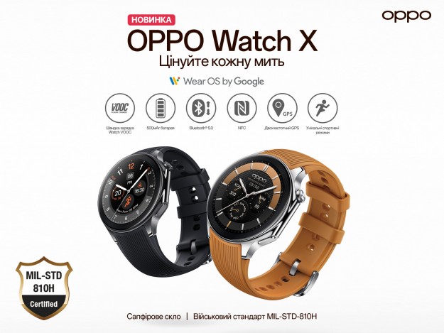 OPPO представляє OPPO Watch X з вдосконаленим фітнес-трекінгом, найкращою в галузі витривалістю та безперебійним зв'язкомOPPO AED Україна сьогодні представила свій новий флагманський смарт-годинник - OPPO Watch X, надійного компаньйона, покликаного піднести кожну мить життя на новий рівень завдяки двочастотному GPS та численним ексклюзивним функціям фітнес-моніторингу. Завдяки двоядерній архітектурі та гібридному інтерфейсу Wear OS від Google™, Watch X має найкращу в індустрії витривалість, забезпечуючи до 100 годин автономної роботи. Крім того, годинник працює до 12 днів у режимі енергозбереження. Завдяки Wear OS 4, найновішій версії платформи, Watch X має інтелектуальні можливості підключення та широку екосистему додатків Google Play.
